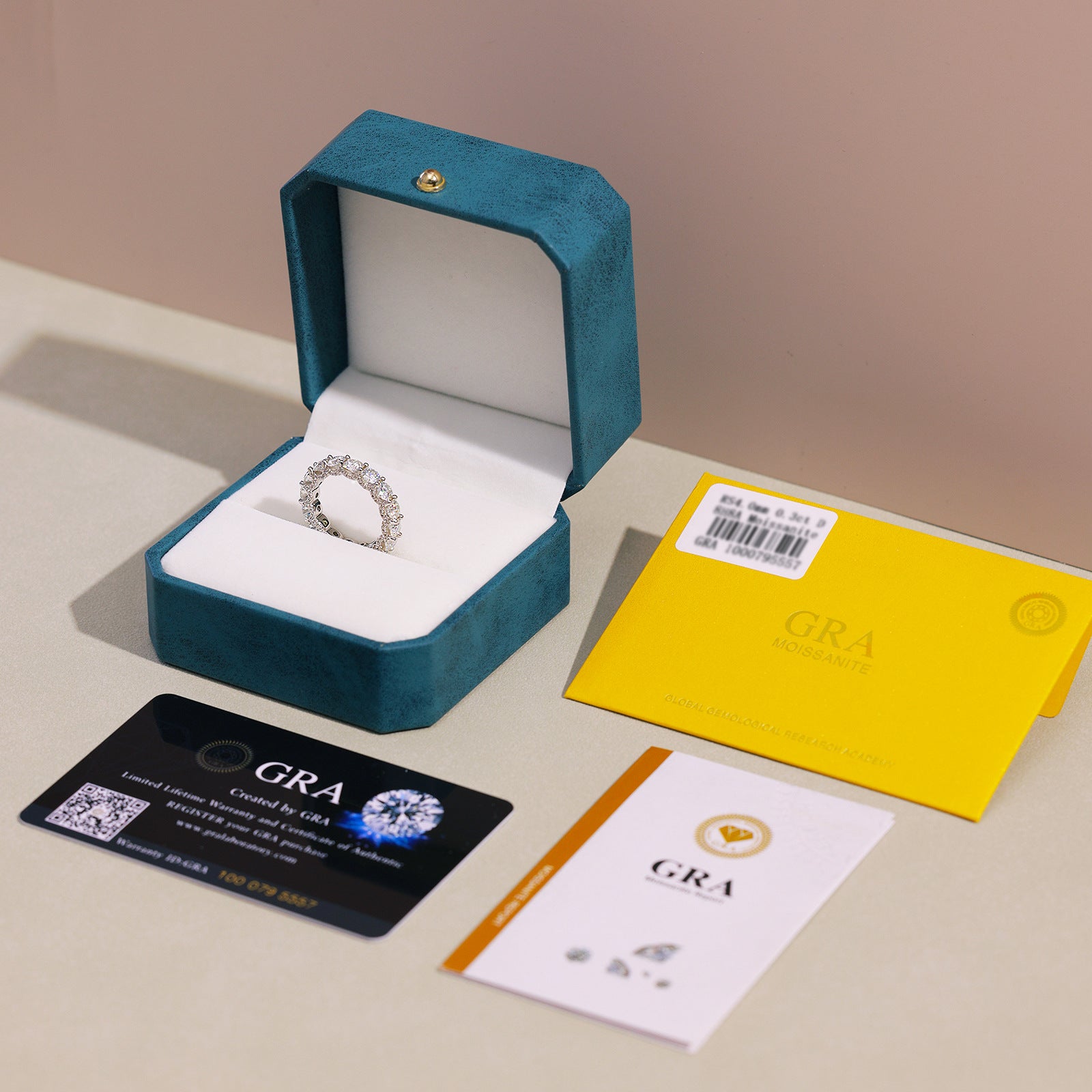 Includes certificate of authenticity for the moissanite stones.