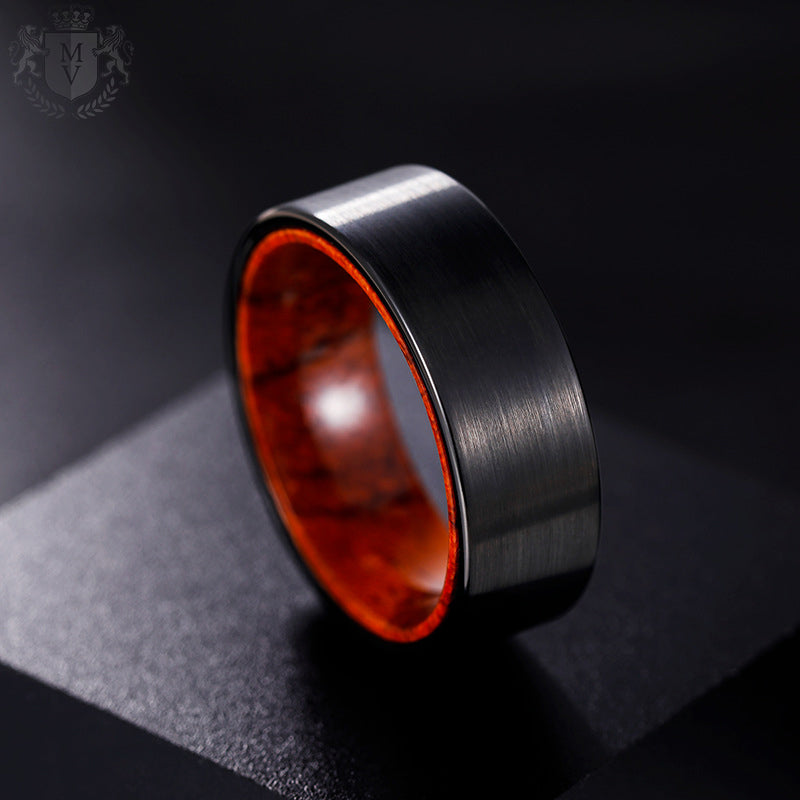 Asheron is forged for those who carry fire beneath still waters. A matte black tungsten exterior speaks in silence, while its polished red sandalwood interior reveals warmth, richness, and complexity. This ring is built for quiet strength — for the kind of person who doesn’t need to raise their voice to be heard. Timeless, durable, and unforgettable, Asheron is more than a ring — it’s a reflection of what lies beneath.