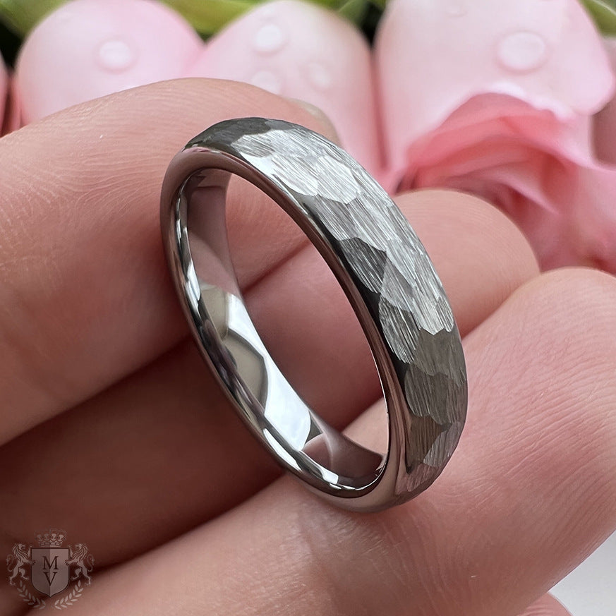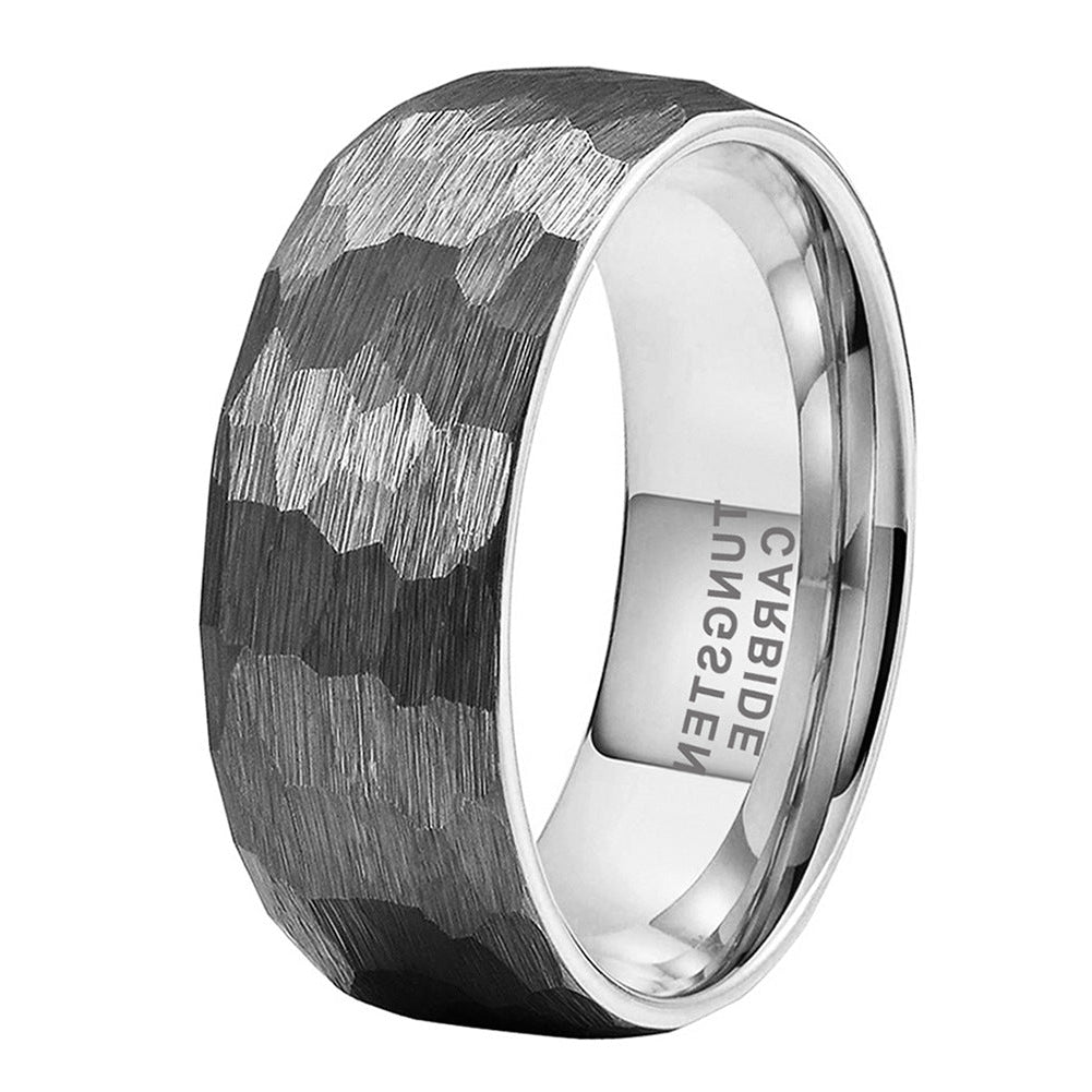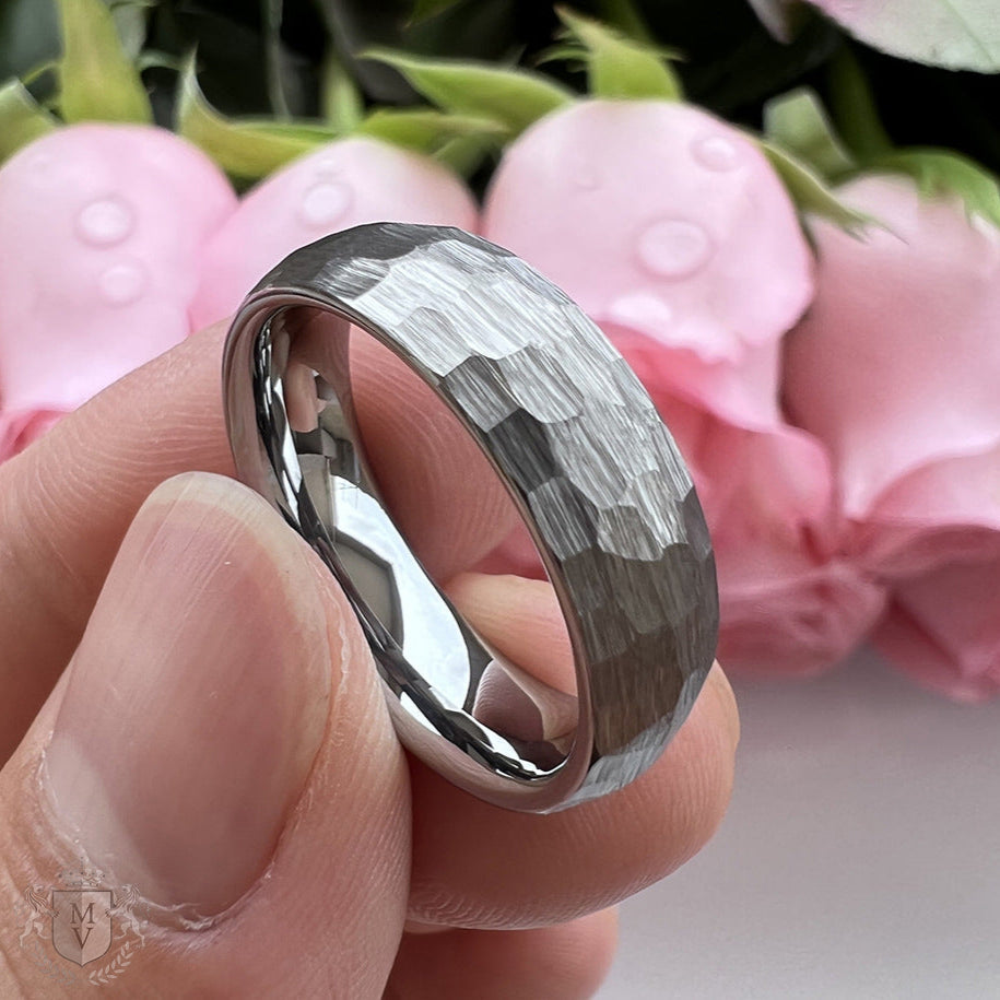 Calder is forged for those who find beauty in simplicity and strength in the raw. Made from brushed tungsten carbide, this ring features a hammered texture with a gunmetal finish and a polished silver interior. Its faceted surface plays with light, creating depth without distraction. Durable, timeless, and unapologetically minimal — Calder is designed for those who stand solid, no matter the terrain.