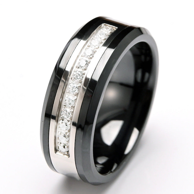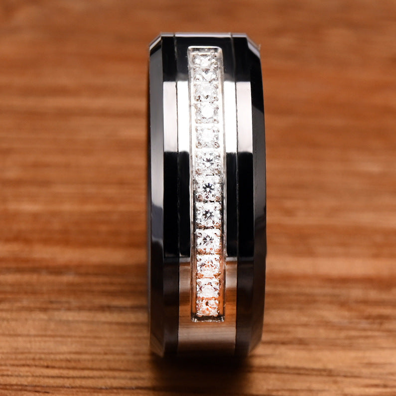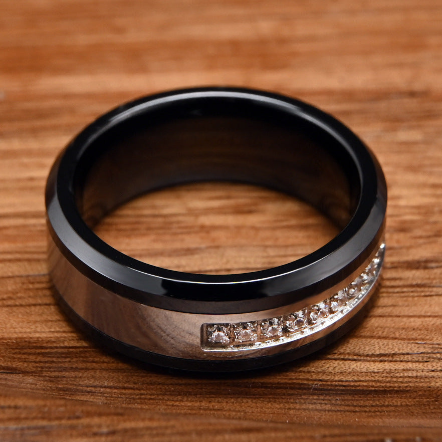 Cassian blends the enduring strength of tungsten with the captivating sparkle of zircon. Crafted with a bold black tungsten body, the design features a polished silver-toned channel set with precision-cut cubic zircon stones, offering a sleek and modern contrast. Built for durability yet styled for elegance, Cassian is the perfect choice for the man who values both resilience and refined taste.