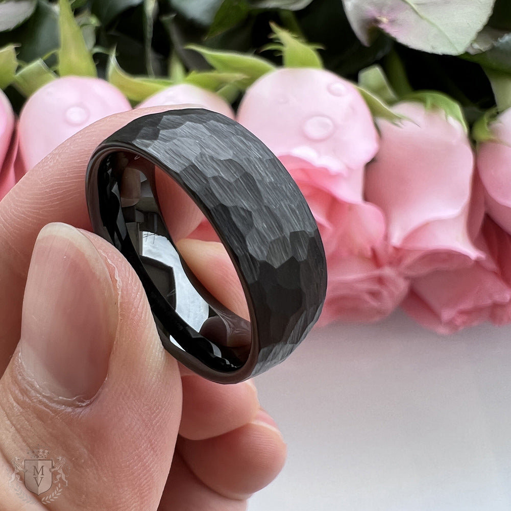 Dravus is where elemental force meets modern design. Forged from durable tungsten carbide and finished in matte black, the ring features a distinctive hammered surface that reflects light with subtle depth and rugged character. Every facet feels intentional — like it’s been carved by time itself. Built to endure, Dravus is the perfect symbol of quiet power, resilience, and raw masculinity.
