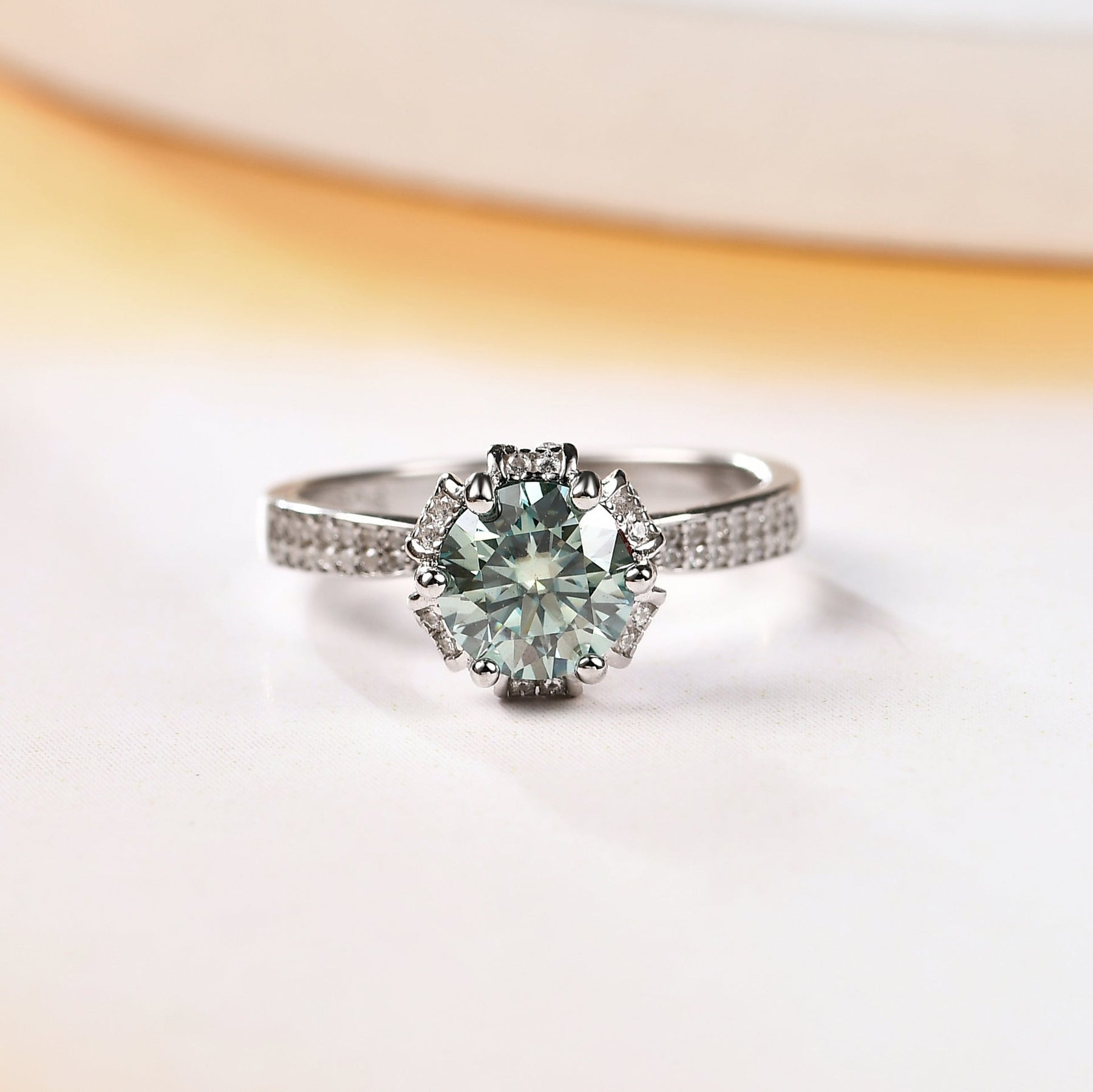 Materials: S925 sterling silver, green moissanite (1ct), pavé-set cubic zirconia.