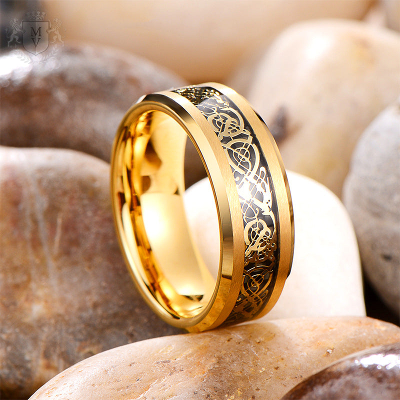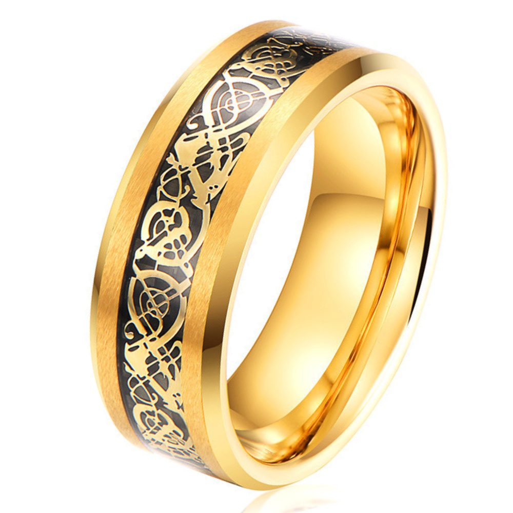 Kareth is made for the man who doesn’t settle for ordinary. With its deep black etched in intricate golden patterns, this ring walks the line between heritage and modern edge. The 18K gold plating adds a sense of weight and authority, while the tungsten base ensures lasting strength. Whether worn as a symbol of commitment or personal power, Kareth commands attention — quietly, confidently, and without compromise.
