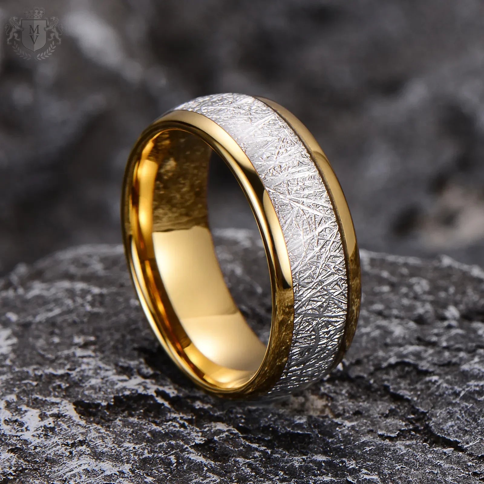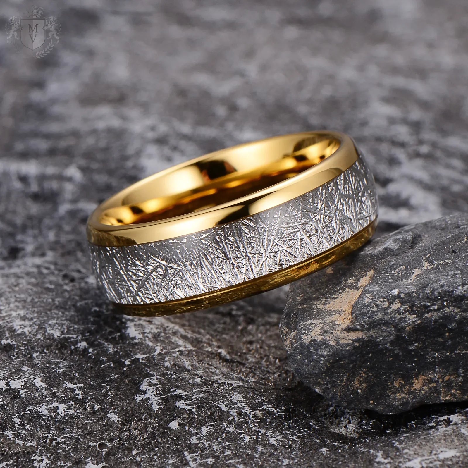 Bold yet sophisticated, Stravos is crafted for those who appreciate contrast — in life and in design. The brushed silver-textured center evokes the raw elegance of frost or stone, while the 18k gold-plated edges bring warmth, richness, and polish. It’s a ring that feels grounded in strength but elevated in every detail.